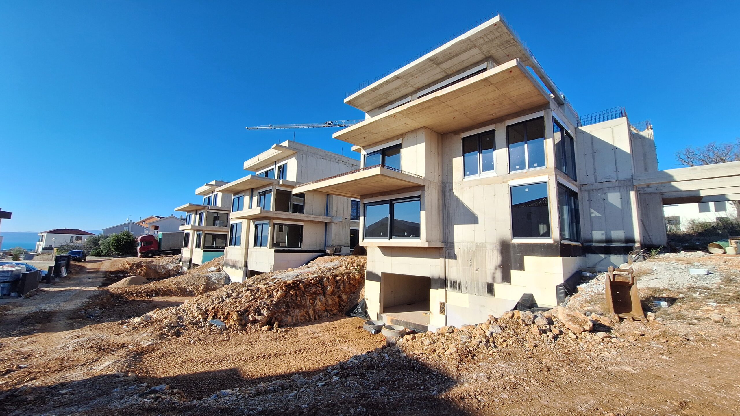 Naša tvrtka je realizirala projekt stambenih objekata u Njivicama, jednom od najpopularnijih turističkih odredišta na otoku Krku. Ovi moderni stambeni objekti osmišljeni su kako bi zadovoljili visoke standarde udobnosti i funkcionalnosti, uz očuvanje prirodne ljepote okoliša. Svaka jedinica je pažljivo dizajnirana, s velikim prozorima koji omogućuju obilje prirodne svjetlosti i prekrasan pogled na more. Korišteni su visokokvalitetni materijali i suvremene građevinske tehnologije, a objekti su opremljeni svim potrebnim sadržajima za ugodan boravak. Ovaj projekt ne samo da donosi nova stambena rješenja, već doprinosi i razvoju lokalne zajednice, stvarajući idealne prostore za obiteljski život ili ulaganje u turizam.